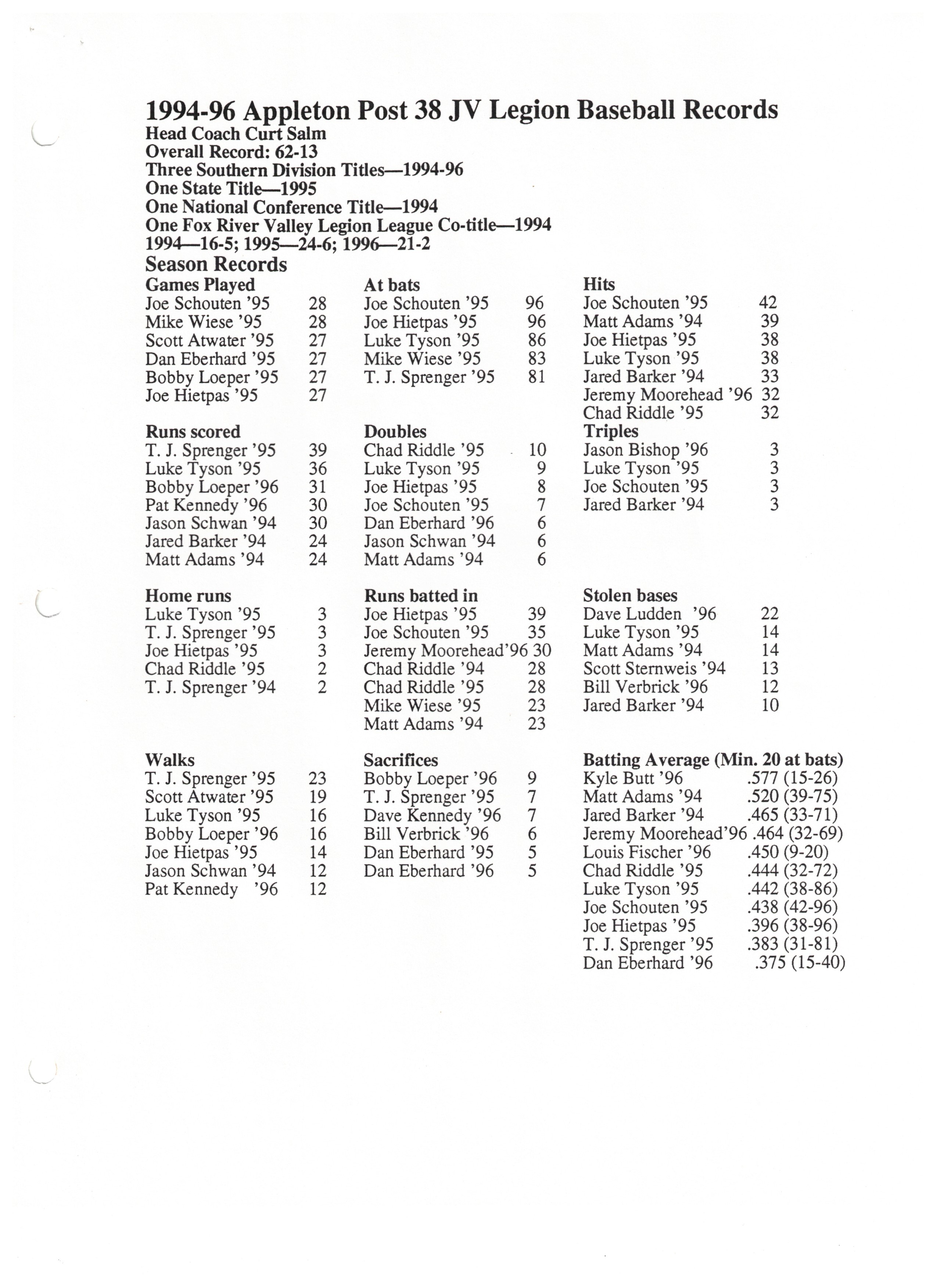 1994-96 JV Records Page 1